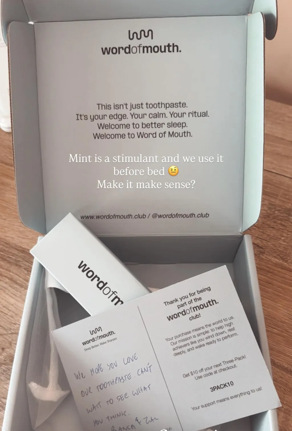 Love it!! Didnโt realise how big a difference the usual minty toothpaste makes at night, keeping me alert. Iโve been able to settle into the night better and have honestly seen a clear improvement in my sleep! ๐ด